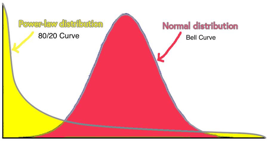 Figuur 3. Statistische power-law verdeling versus normale verdeling