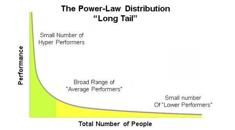 De statistische verdeling van de productiviteit van werknemers wordt ook gecapteerd in de ons inmiddels bekende power-law figuur:
