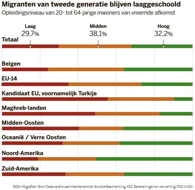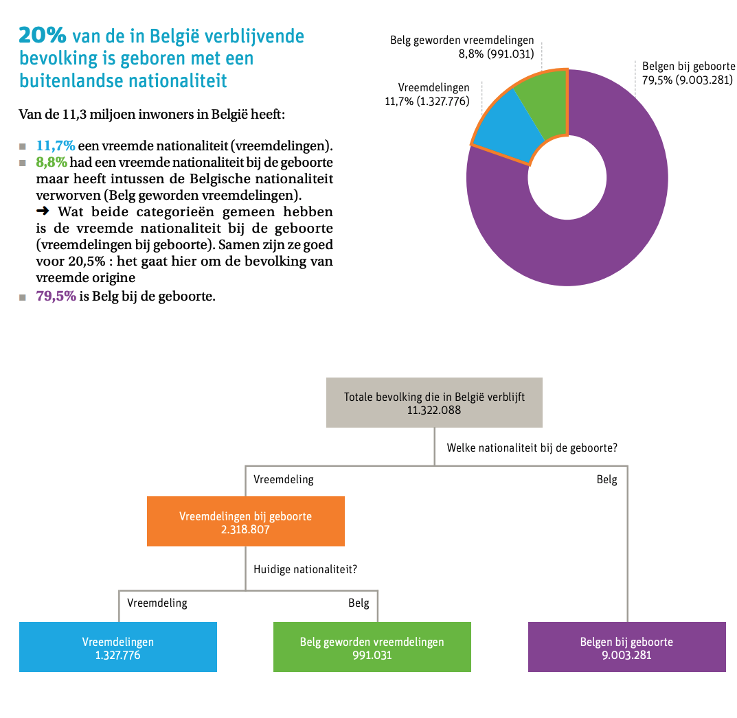 Voor een overzicht en commentaar bij bovenstaande tabellen verwijzen we onder meer naar de in mei van dit jaar verschenen ‘Vlaamse Migratie- en Integratiemonitor 2018’ van het Vlaams Agentschap Binnenlands Bestuur. Het gaat om de derde editie van een periodiek rapport dat administratieve en andere statistische gegevens over migratie- en integratieprocessen van vreemdelingen en personen van buitenlandse herkomst in Vlaanderen bundelt en duidt, binnen een Belgisch en Europees kader. ‘Vlaanderen wordt gekenmerkt door een groeiende diversiteit. Niet alleen stijgt het aantal vreemdelingen en personen van buitenlandse herkomst, ook de interne verscheidenheid bij deze groepen neemt toe. Migratie en integratie vormen dan ook centrale begrippen in onze huidige maatschappij, zowel voor het beleid, de media, de onderzoekswereld en het middenveld als voor de bredere samenleving’ (citaat uit de inleiding op het rapport).