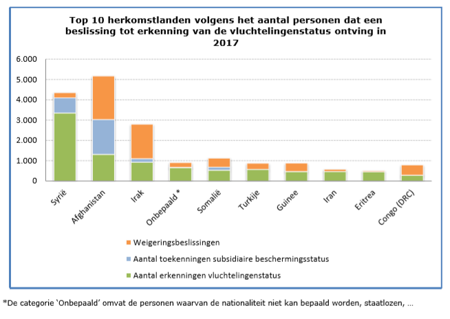 De cijfers reflecteren de aanpak die staatssecretaris voor Asiel en Migratie Theo Francken voorstaat. Hij wil mensen via legale routes naar België brengen, in plaats van dat ze illegaal Europa binnenkomen om zich hier bij de asielautoriteit aan te melden. Tegenover 15.478 asielzoekers in het recordjaar 2016, kregen in 2017 finaal 13.833 asielzoekers de status van vluchteling of van subsidiaire bescherming (50,7% van de CGVS-eindbeslissingen). Dat cijfer is inclusief minderjarige kinderen die hun ouders vergezellen, maar exclusief de volgmigratie, zoals via gezinshereniging.