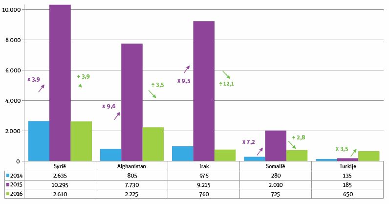 In totaal dienden vorig jaar 19.688 personen een asielaanvraag in bij de Dienst Vreemdelingenzaken. Dat is ruim de helft minder dan in het crisisjaar 2015 waarin een record te noteren viel van 44.760 asielaanvragen. Tegenover de 18.710 aanvragen van 2016 gaat het om een lichte stijging van 5%. Niettemin vroegen vorig jaar minder mensen dan in 2016 asiel aan op Belgisch grondgebied. In het kader van hervestiging vloog de regering in 2017 immers 1.309 mensen over van vluchtelingenkampen in een conflictgebied tegenover slechts 452 in 2016. Daarnaast kwamen 842 mensen vanuit Griekenland en Italië naar België als gevolg van de relocatie voorzien in het spreidingsplan van de Europese Commissie. Het jaar daarvoor waren dat er 200. Daardoor waren er vorig jaar slechts 17.537 echte asielaanvragen, tegenover 18.710 in 2016.