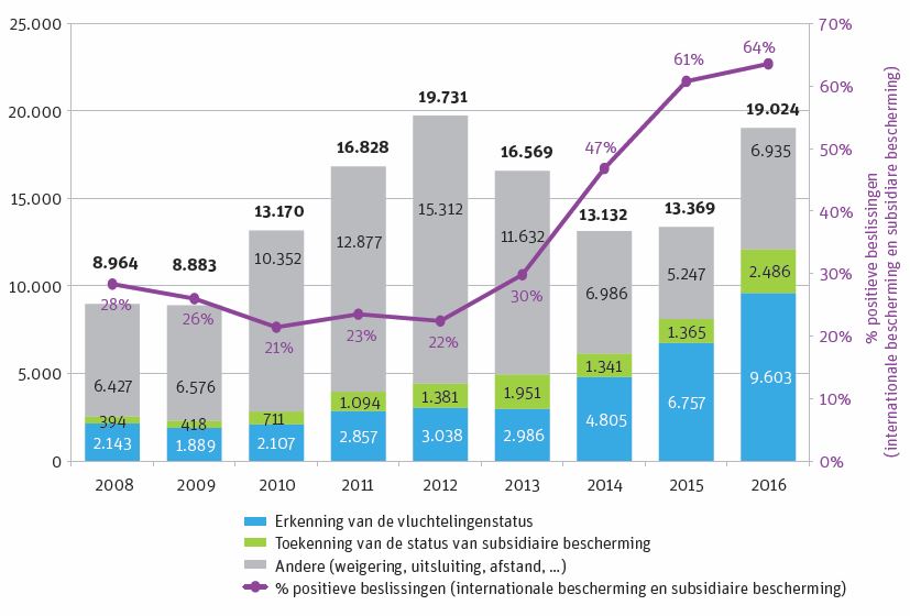 De jaarcijfers van het CGVS laten zien dat de instroom van het aantal echte vluchtelingen is gestegen. Sinds 2015 krijgt ongeveer de helft van alle asielzoekers een positief antwoord op hun verzoek tot internationale bescherming. In 2012 was dat nog maar 22%, wat toont dat velen toen economische gelukzoekers uit arme, maar veilige landen waren. De helft van de mensen die vorig jaar erkend zijn als vluchteling of een subsidiaire beschermingsstatus zijn toegekend, kwam uit Syrië, Afghanistan en Irak. In de voorbije 3 jaar verleende het CGVS-bescherming aan 40.094 personen. Recente cijfers (mei 2018) vermelden een beschermingspercentage van 58,2% (tegenover 60,7% in 2015).