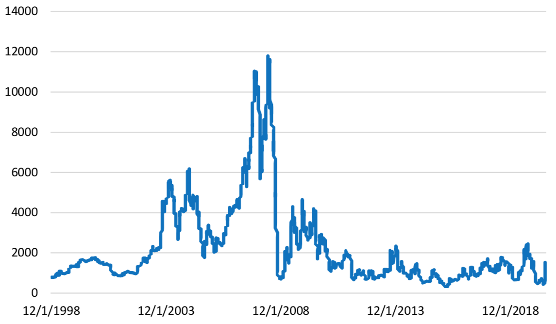 a) de ‘Baltic Dry Index’ van 1 januari 1999 t.e.m. 30 juni 2020