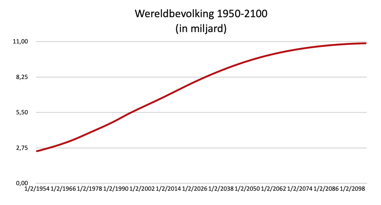 12) United Nations, ‘World Population Prospects 2019’, https://population.un.org/wpp/Download/Standard/Population/. Het wereldwijd toepassen van het Westerse voedselpatroon is een overschatting omdat de Westerse calorieopname en het Westerse verbruik van voedsel van dierlijke oorsprong hoger liggen dan bv. in Afrika. In het kader van deze bijdrage is dit echter van geen belang omdat de focus ligt op de stijging van de totale voedselconsumptie eerder dan op de onderverdeling ervan.